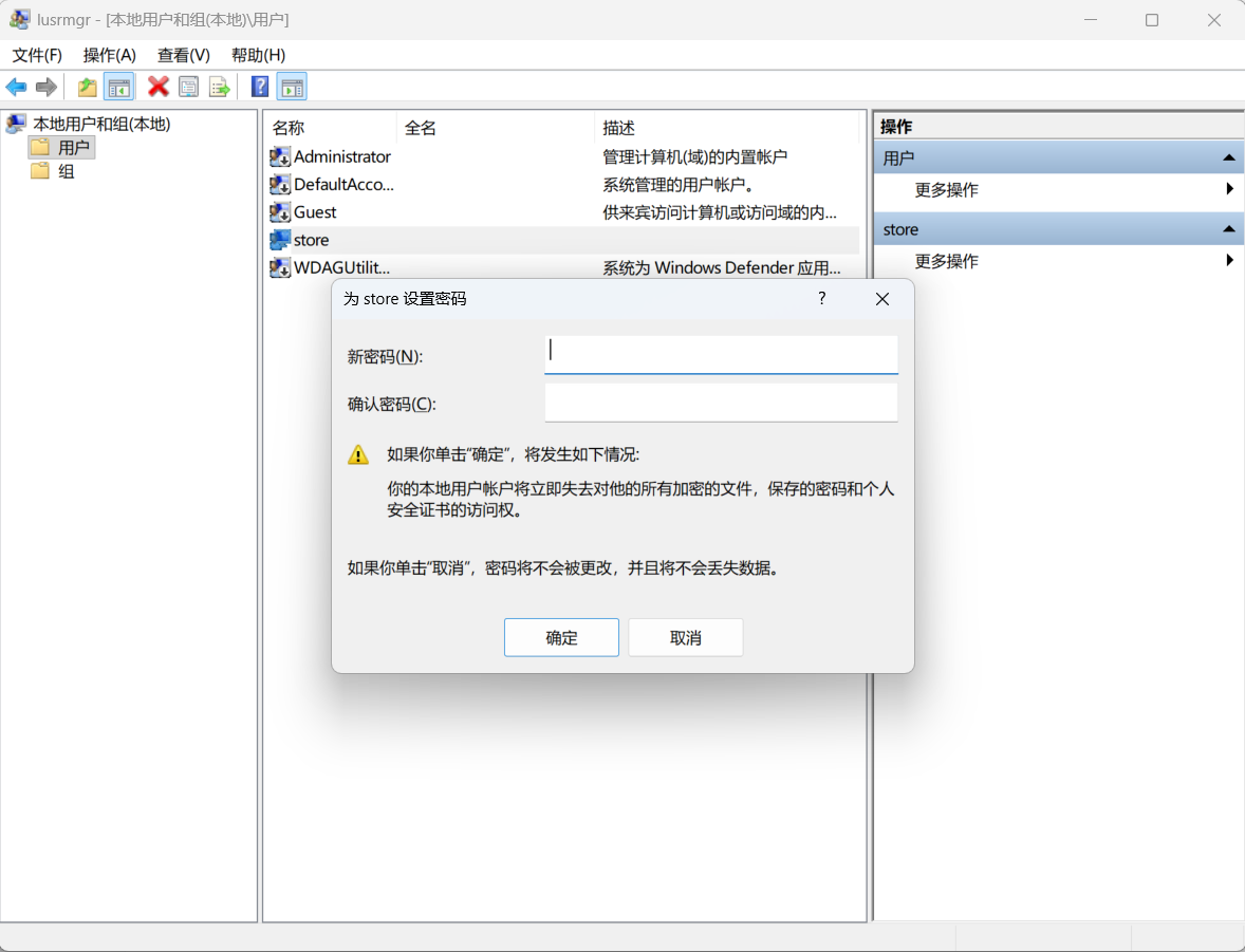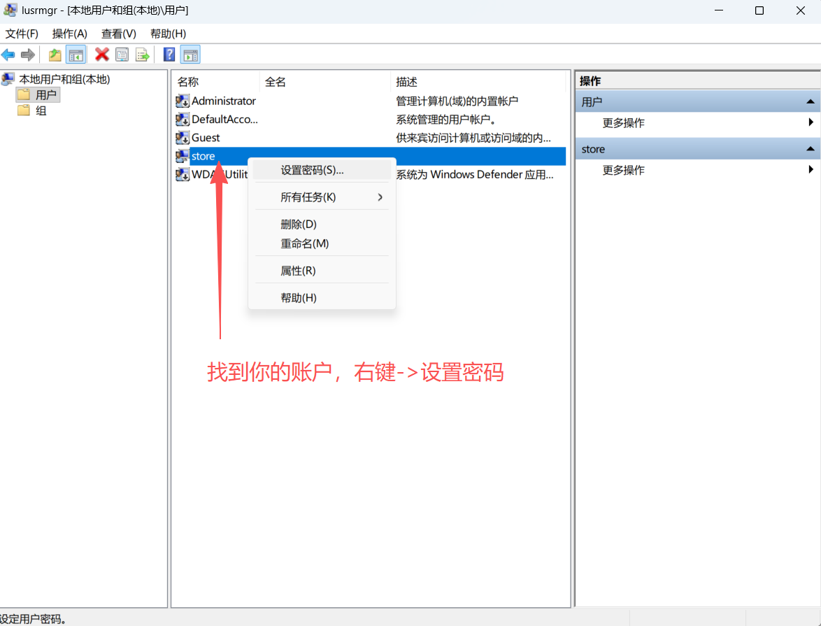 > ###**按 `Win`+`R` 键打开运行框,输入`lusrmgr.msc`,`确定`** ------------ [](https://go.yoobb.com/ymjew503t0m000d7w32y3ykos93mq9v7DIYwAIQ2BdF1Apx1AIYP.jpg) ------------ > ###**双击`名称`栏下的`用户`** ------------ [](https://go.yoobb.com/ymjew503t0m000d7w32y3yku4j3n18isDIYwAIQ2BdF1Apx1AIYP.jpg) ------------ > ###**找到你的账户选中点`鼠标右键`,选中`设置密码`** ------------ [](https://go.yoobb.com/yk6baz03t0m000d7w33gwsulcc54ezw0DIYwAIQ2BdF1Apx1AIYP.jpg) ------------ > ###**弹出来的窗口点`继续`** ------------ [](https://go.yoobb.com/ymjew503t0m000d7w32y3ylaws3nrjw2DIYwAIQ2BdF1Apx1AIYP.jpg) ------------ > ###**密码留空点`确定`** ------------ [](https://go.yoobb.com/yk6baz03t0l000d7w33g48ex29pilaqkDIYwAIQ2BdF1Apx1AIYP.jpg) ------------ > #****完成****